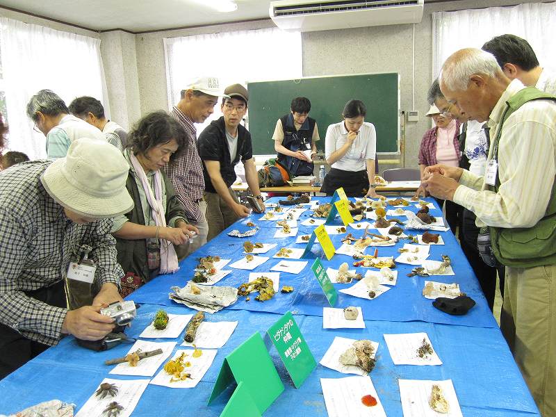 梅雨時きのこ観察会は7月7日(土)、都立長沼公園で開催された。今年は、梅雨 入り時は雨が多く降ったが、ここ10日ほどはあまり降らない。きのこは発生してい るのであろうか。きのこの発生を願い観察会に臨んだ。 10時、担当幹事より都の公園利用についての注意事項や観察方法、その他の 注意事項等が話された。また、新入会者の岡村さんと小山さんが紹介された。 その後、4つの班に分かれ、講師役の幹事を中心にきのこの観察は行われた。 今年はガビ鳥の声が聞こえる。ウグイスのきれいな鳴き声もきこえる。ベニタケ、 クロハツが目に付く。 12時、六社宮内の長沼会館に集合し、見本に採取してきたきのこを種類別に テーブルの上に並べ、名前を付けた。昼食を食べた後、机上に並べられた観察 資料(名前がつけられたきのこ)についての説明がされた。講師の星野先生から、 個々のきのこに関しての詳しい説明がなされた。今年のきのこの発生は気象の 関係で例年に較べ10日ほど遅れているそうだ。松井先生からは、きのこを観察 する場合、科や属等、グループとしての特徴をしっかりと掴むことが大切だという 話がされた。また、クロハツを例にとり、きのこを二つに裂き、切断面の色の時間 的経過を観察し、その同定方法も説明された。また、両先生から同じきのこでも、 温度、湿度等気象条件によって色や形の変異があり変わった形のきのこが発生 することがある等の説明がされた。きのこはむずかしい。 きのこに関する情報は日々進歩している。それ故、新しく出版されるきのこの本 や情報を参考にすることが大切との説明もあった。 会は盛況のうち午後2時散会した。また本日の参加者は30名(うち2名非会員) であった。 観察され名前が付けられたきのこはテングタケ科、イグチ科、ベニタケ科を主に 59種であった。 (担当 鈴木 登) |